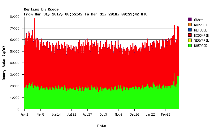 The potential impact of this new functionality shouldn’t be underestimated. The reduction of traffic will have benefits on all levels of the DNS hierarchy but it will be most noticeable at the root, where up to 65% of all responses are NXDOMAIN, as seen on for example K-Root.