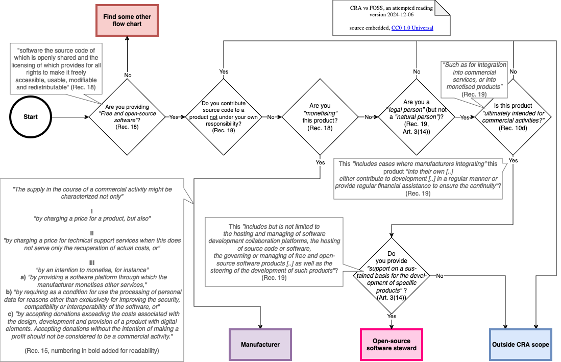 It would be helpful if someone made a similar diagram that maps out obligations for open-source software stewards, to similarly guide reading.